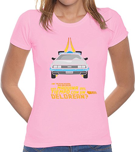 Imagen anteriorImagen siguiente LaTostadora-Camiseta-Delorean-Chica-Camiseta-mujer-corte-clsico-Rosa-Talla-S-0